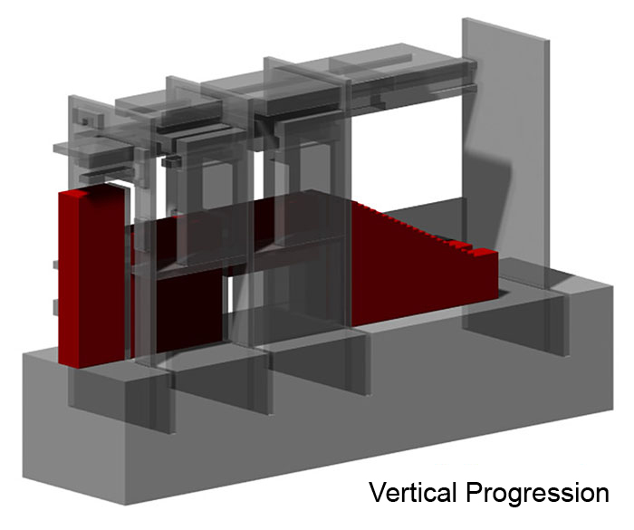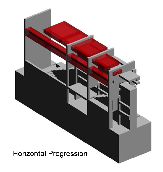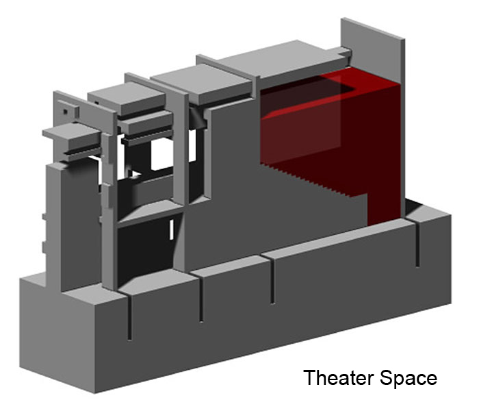 This design study began with the exploration of space in two dimensions, then a series of extrusions to create three dimensional space. The final structure was fitted with a program for a cinema.