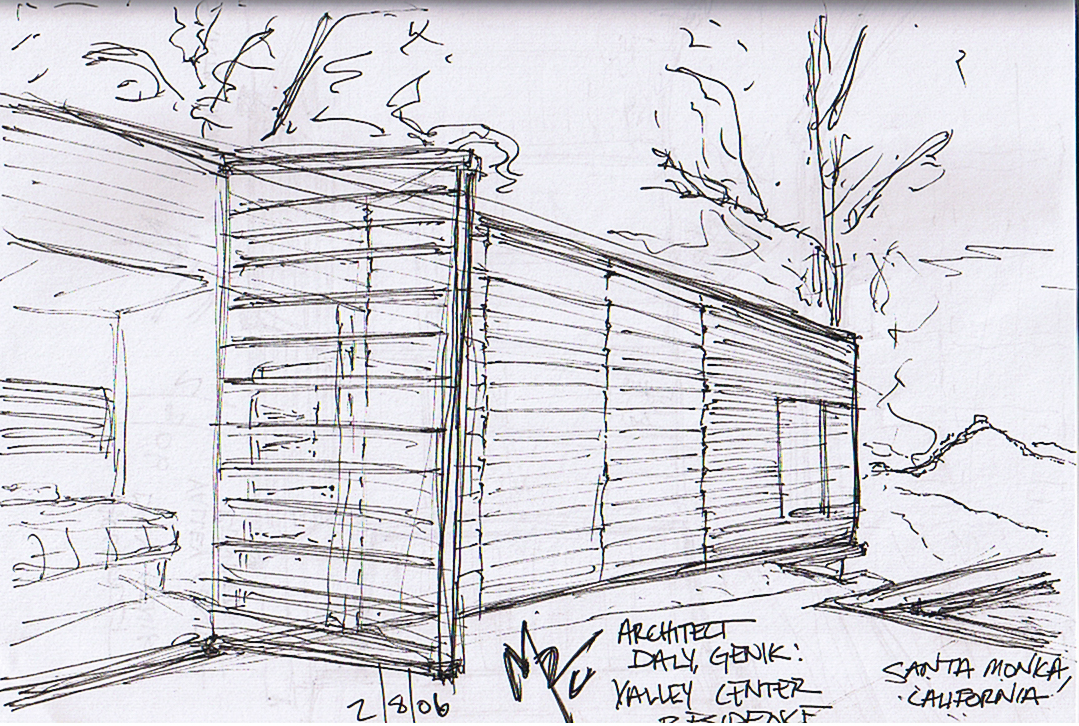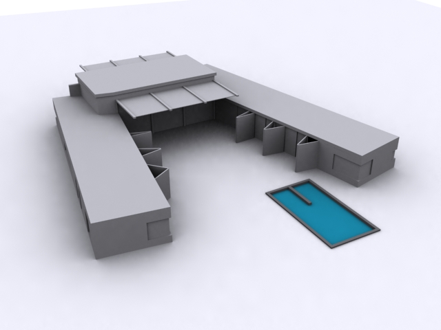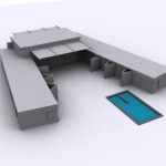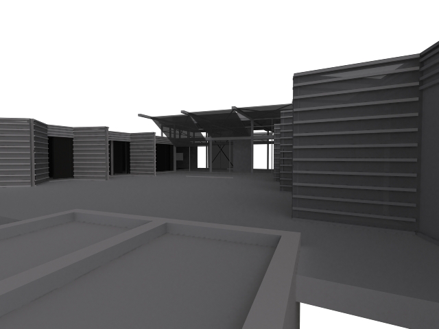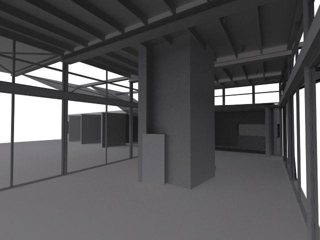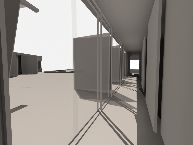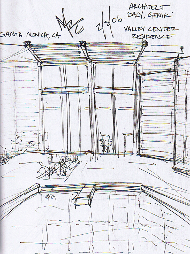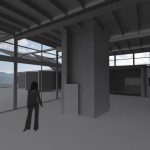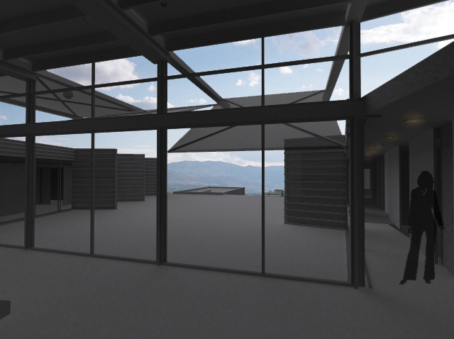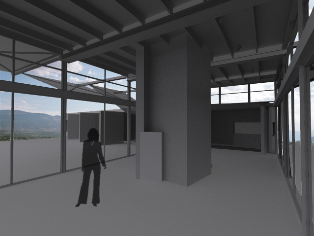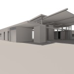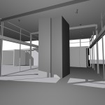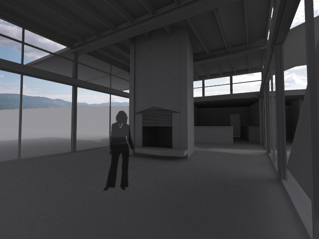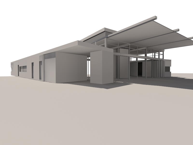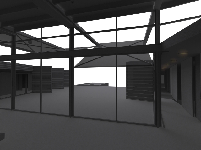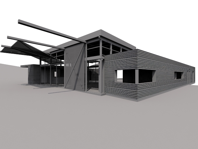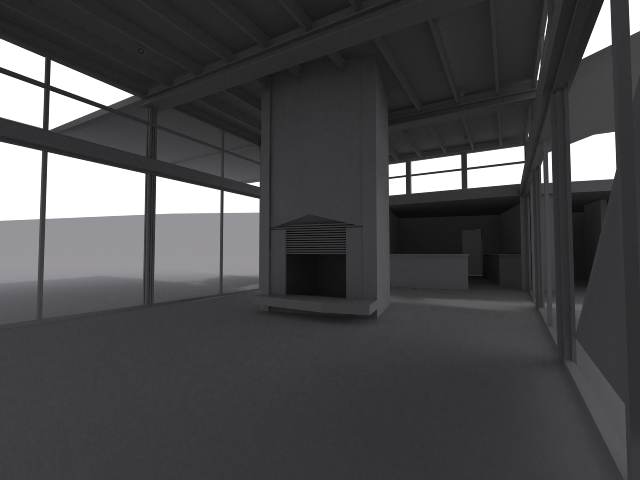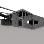 This digital model is of Valley Center House in California, designed by architect Daly Genik. I did not design the structure – I simply re-built it in 3D Studio Max as a study.