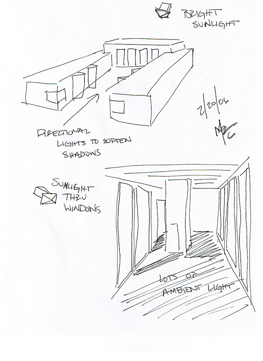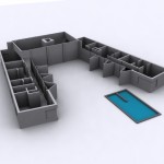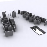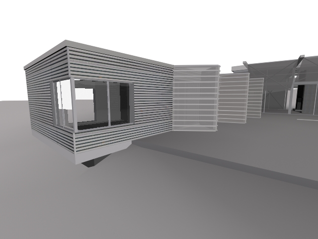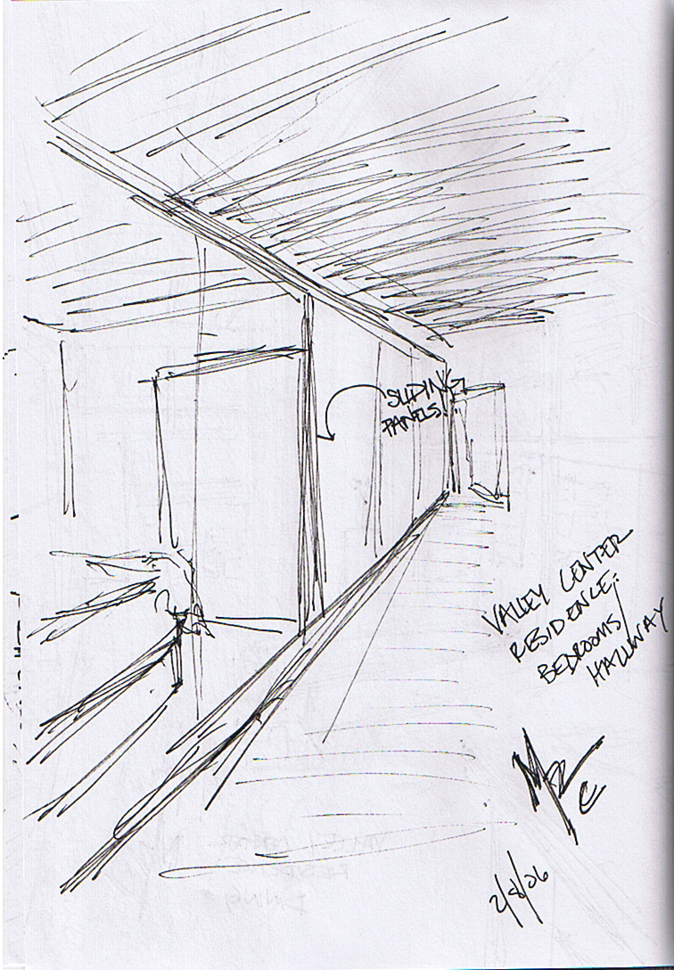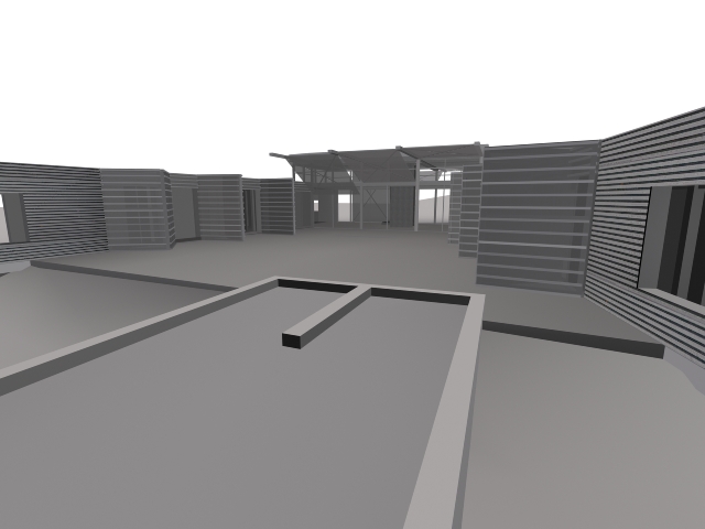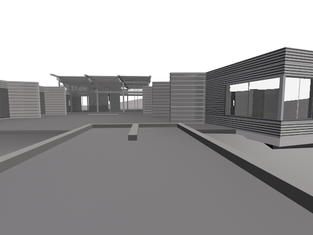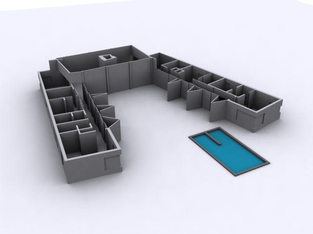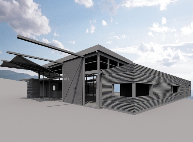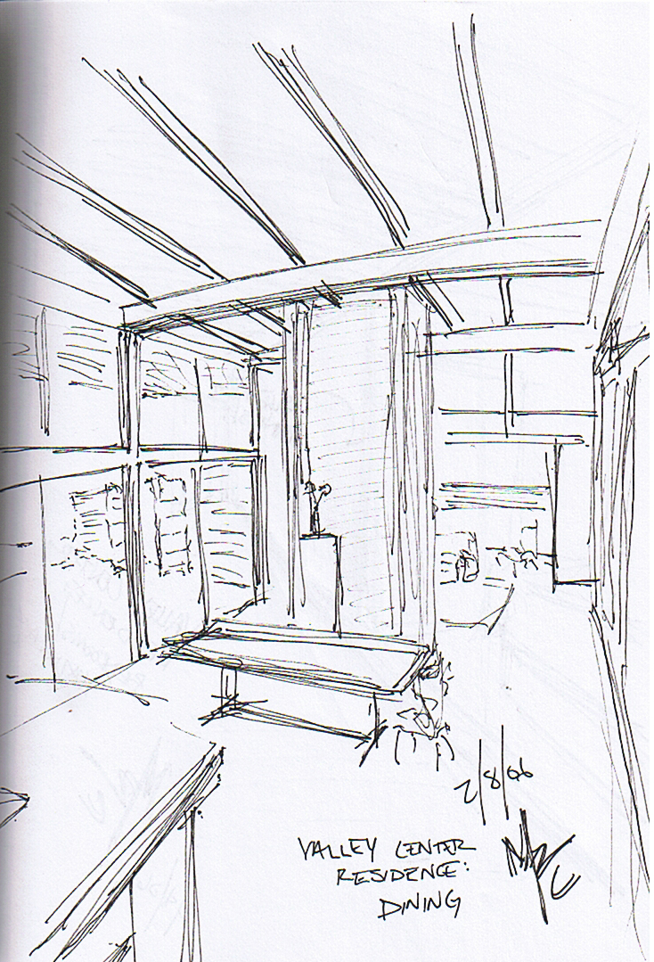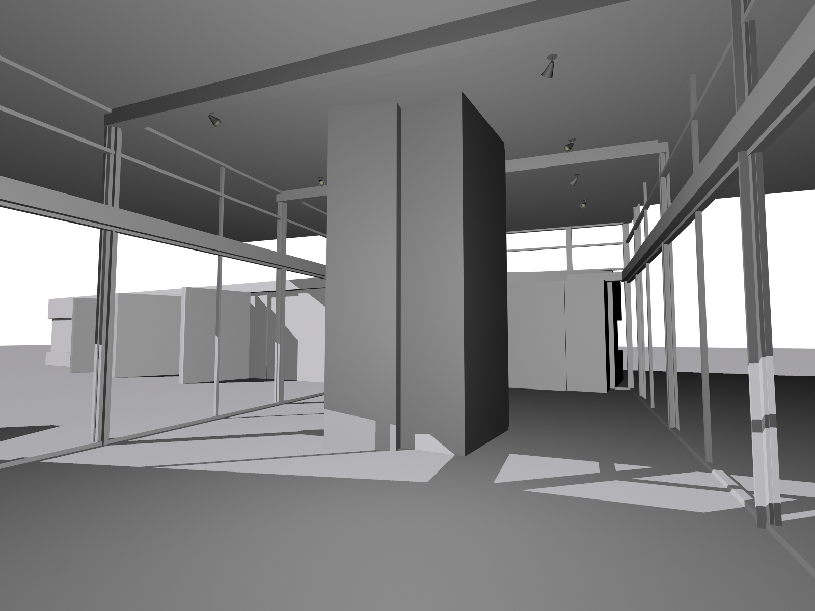 This digital model is of Valley Center House in California, designed by architect Daly Genik. I did not design the structure – I simply re-built it in 3D Studio Max as a study.
